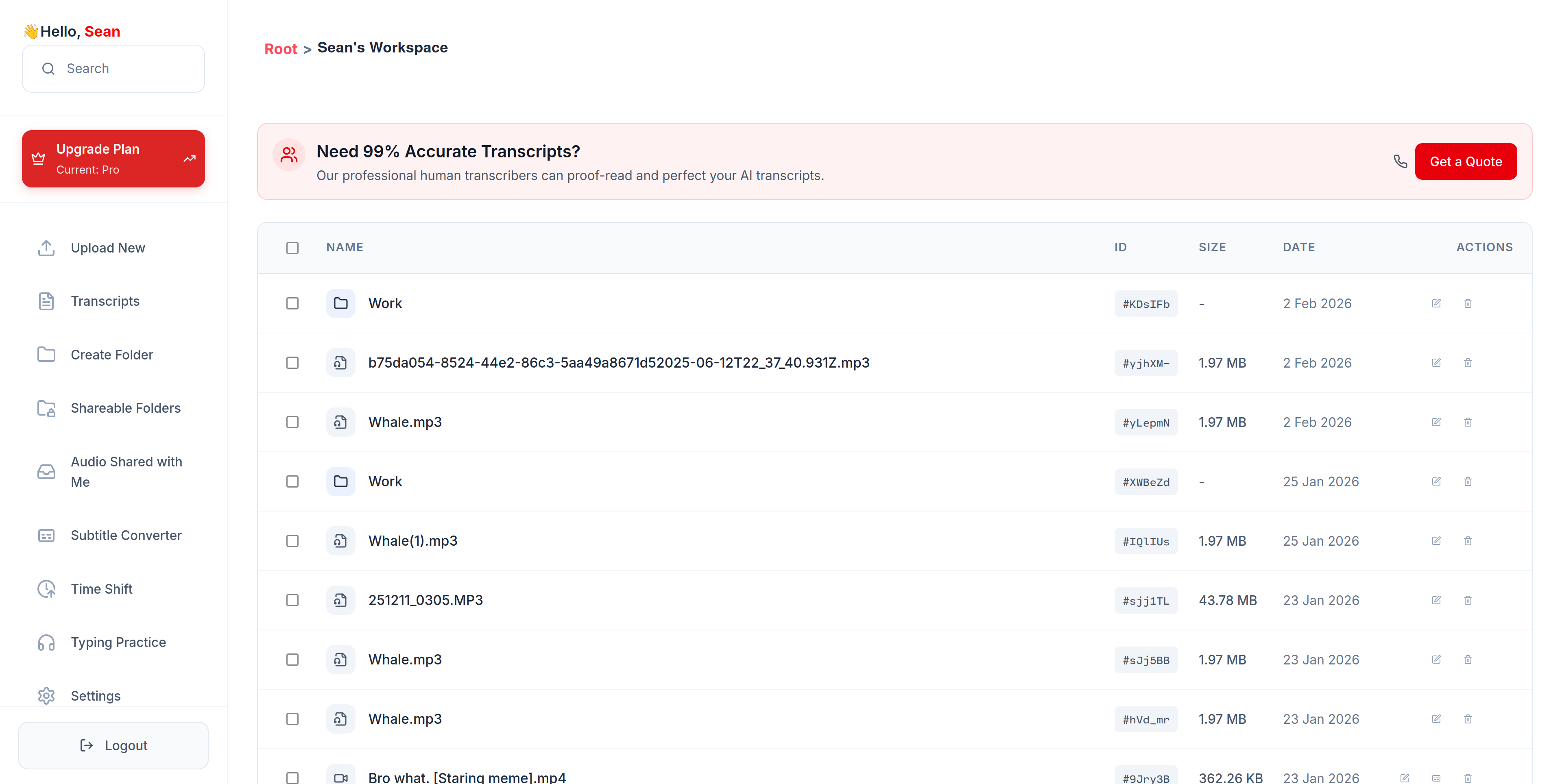 Organise all your files, folders, and transcriptions in one place